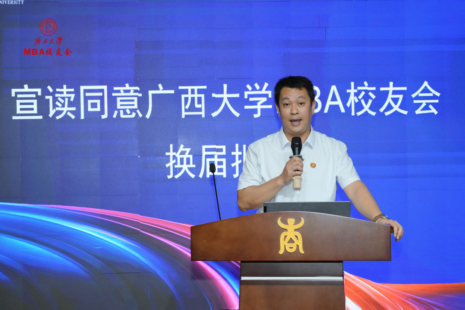 员工办主任周海斌宣读了365官网体育员工总会批文。会议审议并通过了《365官网体育MBA员工会章程(修订)》《365官网体育MBA员工会第三届组织机构成员建议名单》;选举产生了以贺忠为会长、李翔为执行会长,韦宗华为秘书长的365官网体育MBA员工会新一届组织机构成员。出席大会代表、嘉宾共同见证了会旗交接仪式,马献力副书记等领导为MBA员工会新一届组织机构成员颁发了聘书。