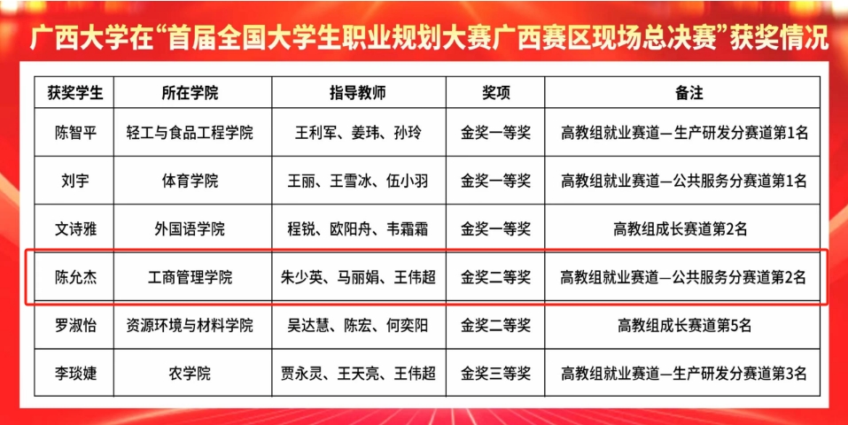 3月12日-13日,首届全国老员工职业规划大赛广西赛区现场总决赛在广西师范大学举行。公司硕士研究生陈允杰参加比赛,并荣获就业赛道金奖二等奖。