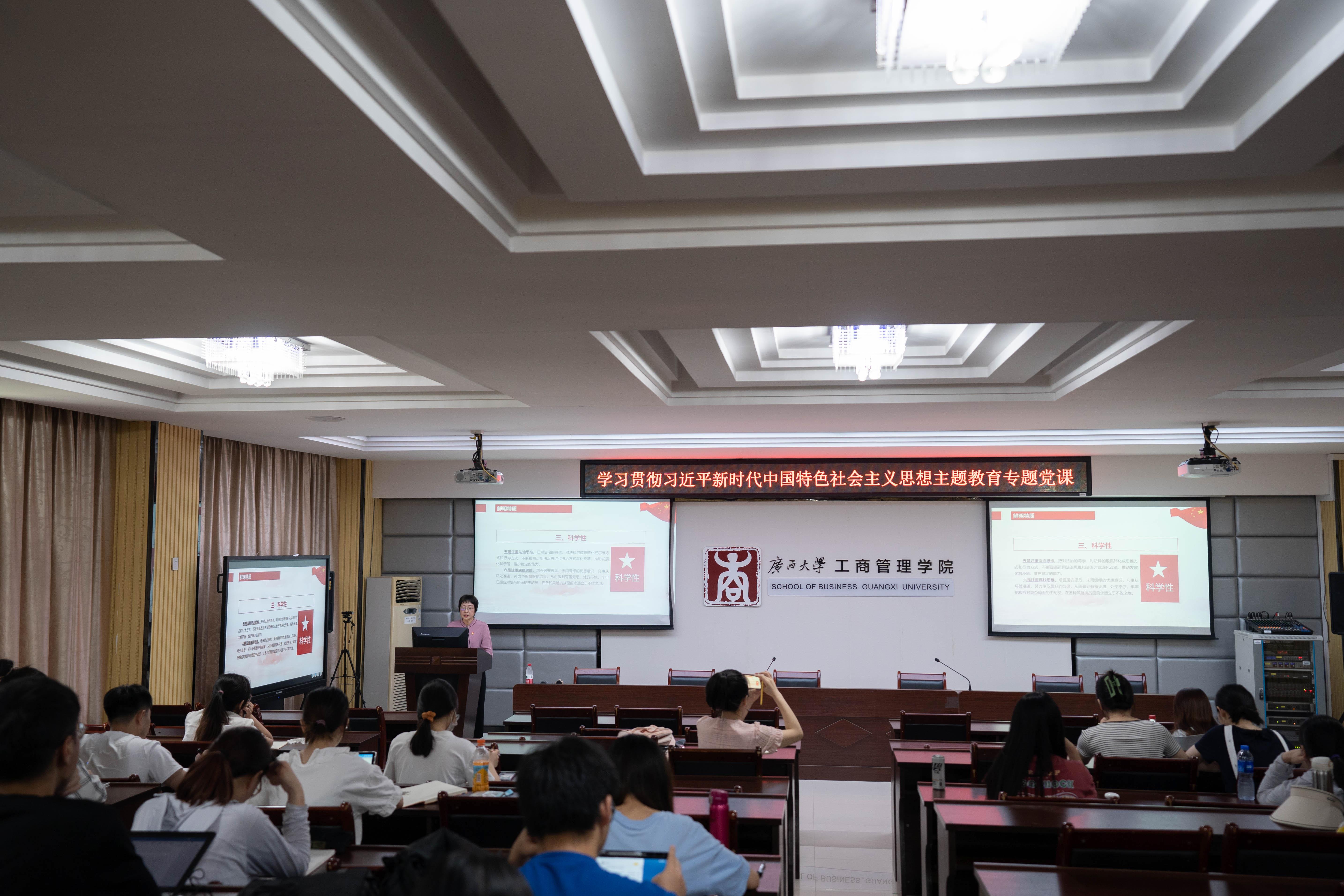 公司副经理廖东红以《学习贯彻习近平新时代中国特色社会主义思想》为题,在公司124报告厅为研究生第一党支部和本科生第四党支部讲授专题党课,她就习近平新时代中国特色社会主义思想主题教育概述、主要内容以及鲜明特质进行了阐述。她号召大家以主题教育为契机,深入学习贯彻党的二十大精神,努力把公司建成“区域有品牌,国内有特色,国际有影响”的新时代高水平beats365官方唯一入口。
