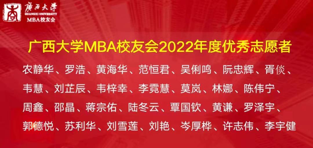 365官网体育MBA员工会会长梁华秀作2022年工作总结,他表示,MBA员工会团队是“广西学历最高的志愿者服务团队”。员工会在2022年开展了系列丰富多彩的活动,包括各类走访交流活动、MBA员工沙龙、MBA员工共享茶室公益平台、MBA员工读书会、慈善公益活动以及形式多样的文体活动等。