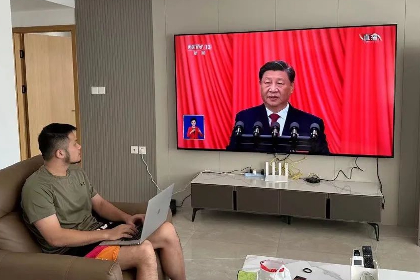 研究生第五党支部书记、2021级硕士研究生黄文朗:通过收看盛会,本人感受深刻,在以习近平同志为核心的党中央正确领导下,我国综合国力在科技、文化、法制等领域取得巨大的提升,这大大提升了我们青年员工的民族自豪感。习近平总书记教导我们,青年强则国家强。这将鞭策我们不断努力学习,提升自我,在全面建成社会主义现代化强国这一伟大历史时期贡献自己的力量,实现自己的人生价值。