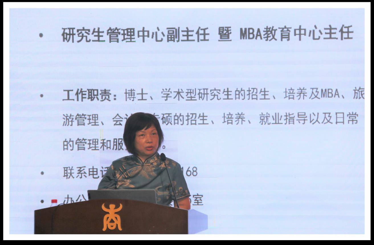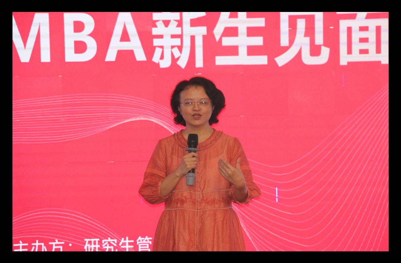 研究生管理中心副主任、MBA教育中心主任叶映从MBA教育中心组织构架、MBA招生情况、培养方向、团队队伍、专业评估、合作办学、MBA培养流程及学业预警与分流等几个方面介绍MBA专业情况及公司产品要求,帮助同学们快速了解专业情况及培养环节中的注意事项。