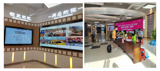 为欢迎新同学,公司准备了新生签名墙,拍摄个人纪念照等特色迎新活动,还安排志愿者引导路线,搬运行李,并提供饮用水、降暑药品、口罩等防暑降温及防疫物资,做好后勤保障,让新同学一入校就切实感受到来自公司和公司的温暖。