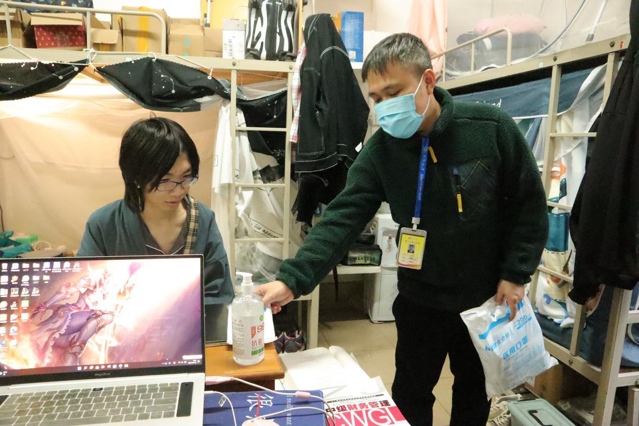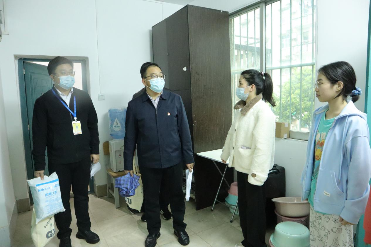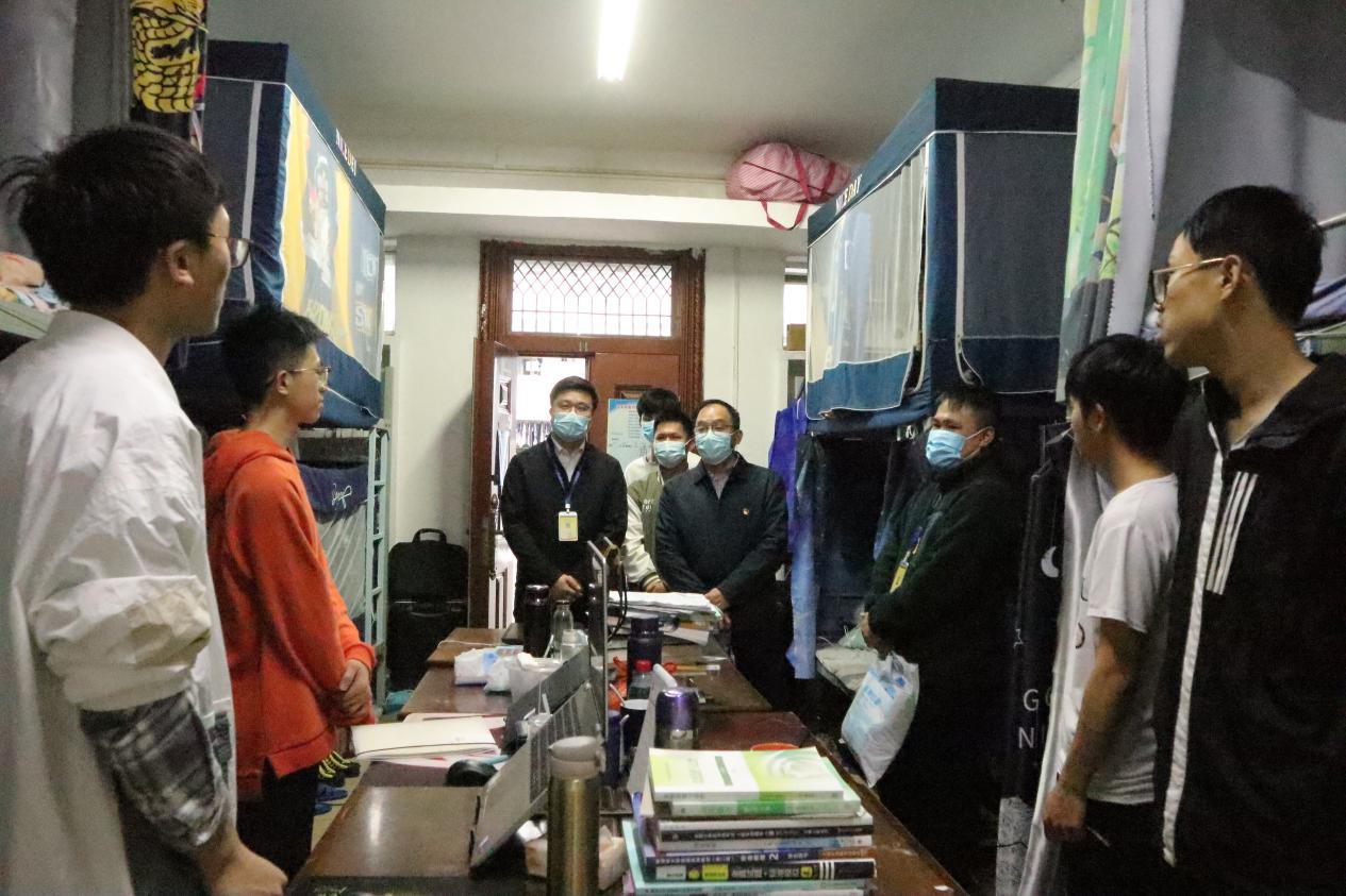 为贯彻落实好《365官网体育2022年工作要点》提出的“和书记聊思想”工程,3月23日下午,公司党委书记罗诚、党委副书记黄晋分别带领辅导员、主要员工干部走访公司本科生男、女生宿舍及西校园南区研究生宿舍,重点了解公司员工在疫情防控状态下的思想、线上学习、生活等情况,并为同学们送上免洗洗手液、口罩等防疫物资。