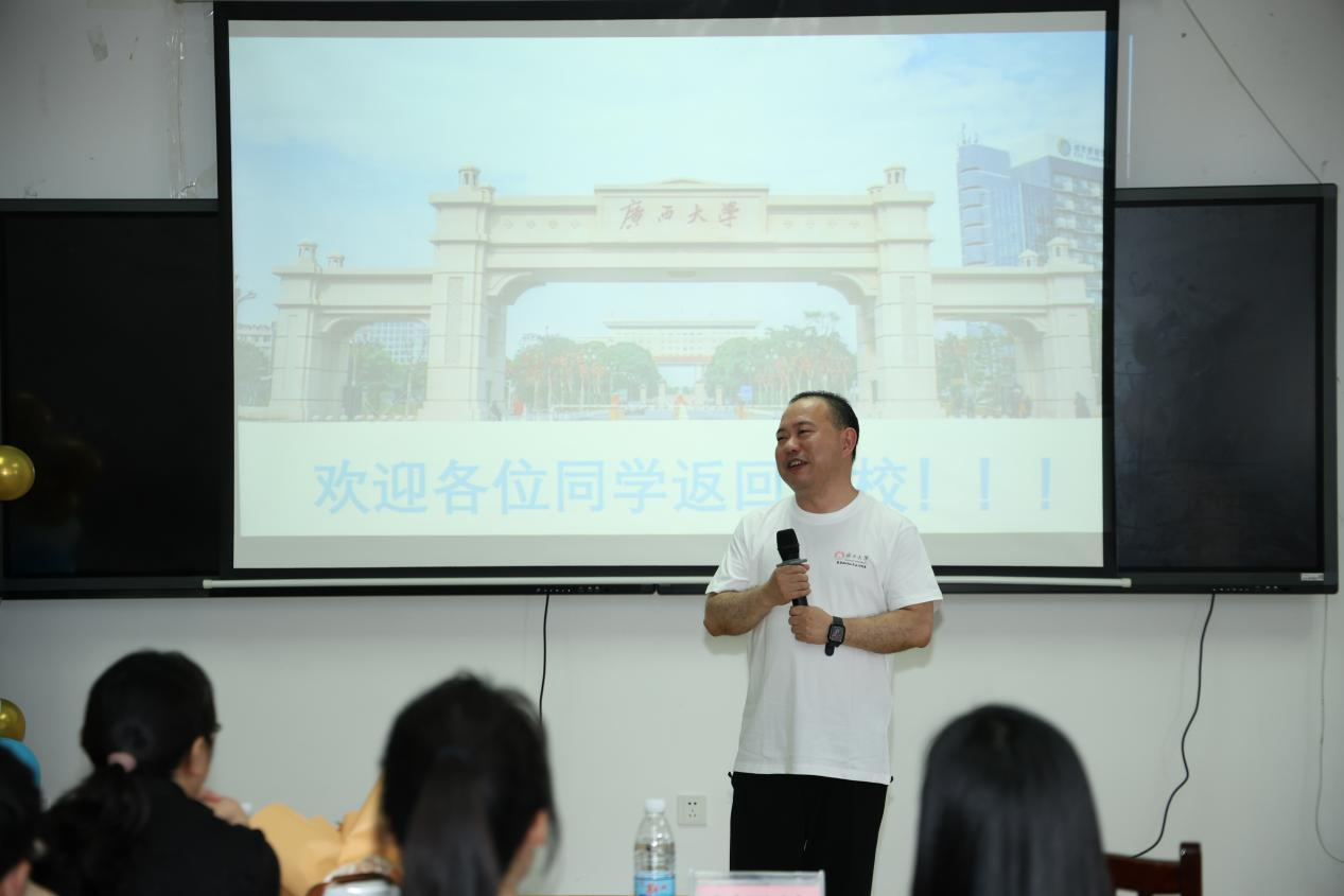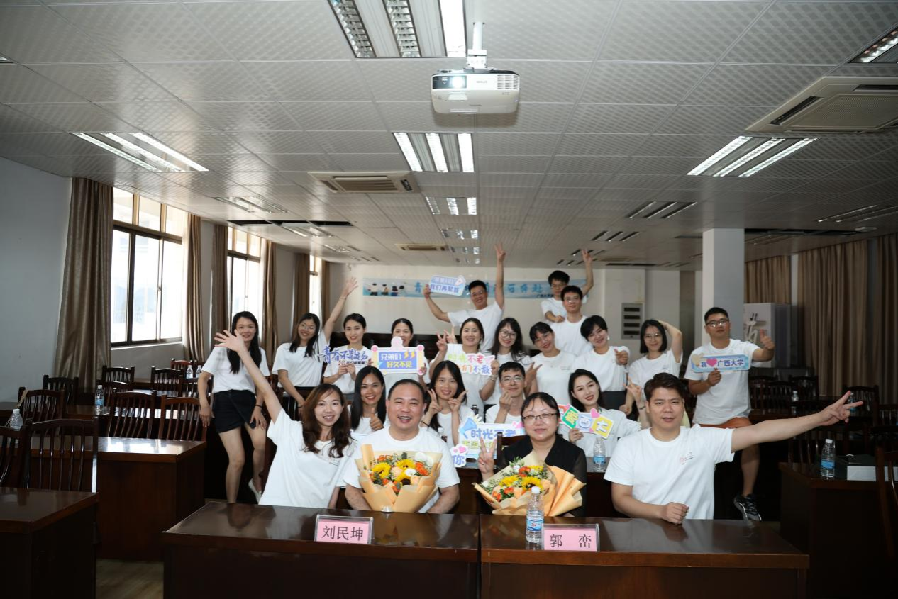 在公司的教室里,员工们围坐一堂,召开了具有特殊意义的主题班会。公司副经理刘民坤向员工们致以最诚挚的祝福,对广大员工在各行各业服务党和国家事业发展取得的成绩表示衷心地祝贺。旅游管理系主任、2010级旅游管理专业班主任郭峦向同学们介绍了母校及公司的发展近况,希望同学们珍惜同窗情谊,增进联系,携手共进。