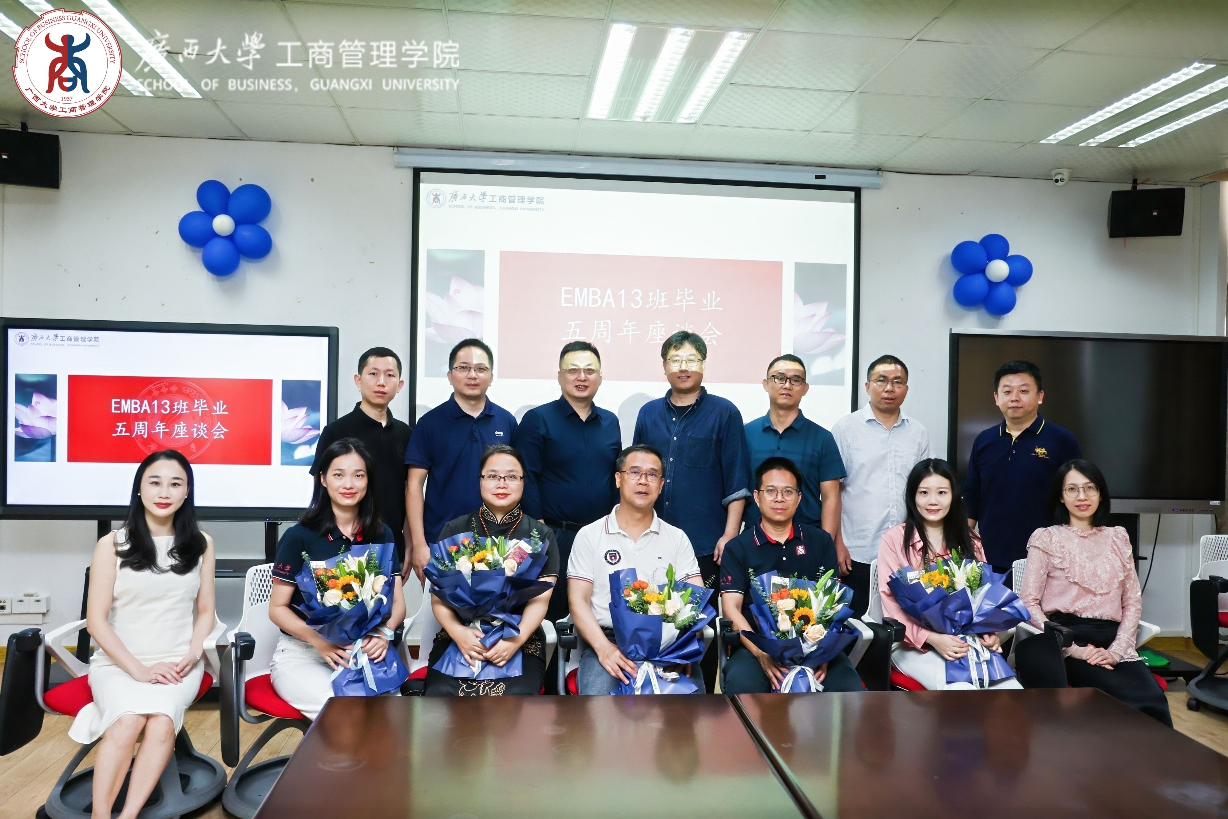 17日上午,2017级EMBA13班5周年返校聚会在公司516教室热闹进行。员工们通过精心制作的视频,共同回顾了在365官网体育学习的难忘瞬间,未能到场的同学亦通过短视频,表达了对活动的支持。朱少英副经理、黎鹏教授、覃朝勇教授、宁雪莲主任、黄子芸老师与同学们共话师生情、西大情。