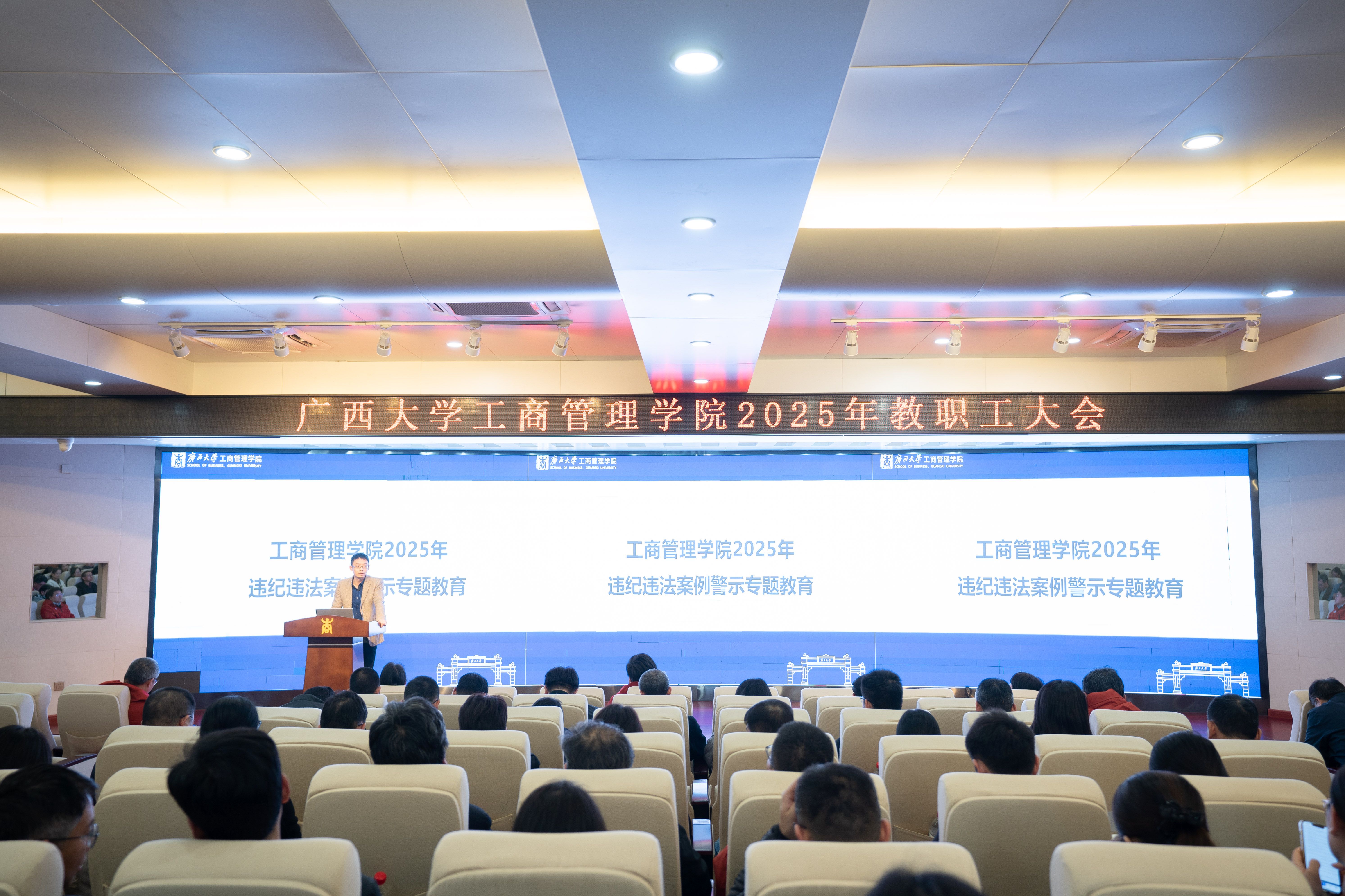 随后,肖克宁副书记、朱少英副经理、廖东红副经理,韦铁经理助理结合各自分管(代管)工作,就员工工作、工会工作、纪委工作、研究生管理、人事和行政管理、团队建设与科研管理等方面的工作亮点及成效、下一步工作计划等进行了总结汇报。肖克宁副书记还结合近年发生的严重违纪违法典型案例,对全院教职工开展了违法违纪案例警示专题教育,强调严格遵守、执行和维护党的纪律的重要性。