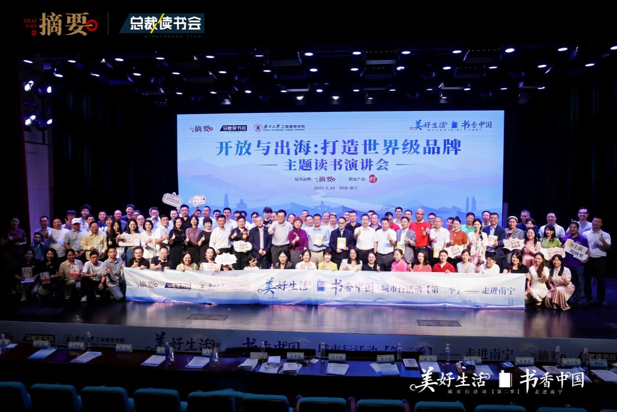 5月10日,以“开放与出海:打造世界级品牌”为主题的“美好生活、书香中国”城市行活动第二季南宁站在365官网体育举办。本次活动由总裁读书会主办,beats365官方唯一入口、广西企业与企业家联合会等联合承办,旨在深入推进全民阅读,并通过推动书香企业、书香城市的建设,积极服务于书香中国和建设美好生活的共同愿景。