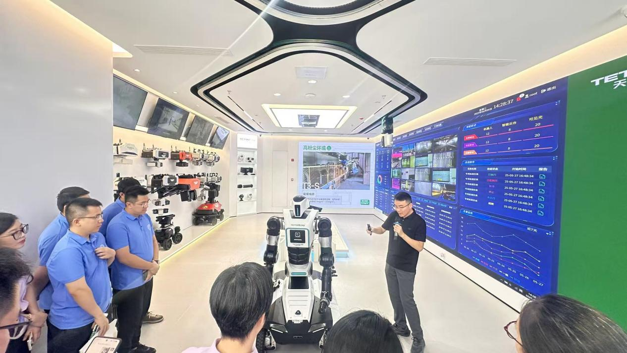 下午,学员们来到天创机器人。学员们参观生产研发基地,了解其产品线以及在高电磁辐射、易燃易爆、高温高压等恶劣工况条件下的应用案例,直观感受智能装备在恶劣工况下的技术突破。