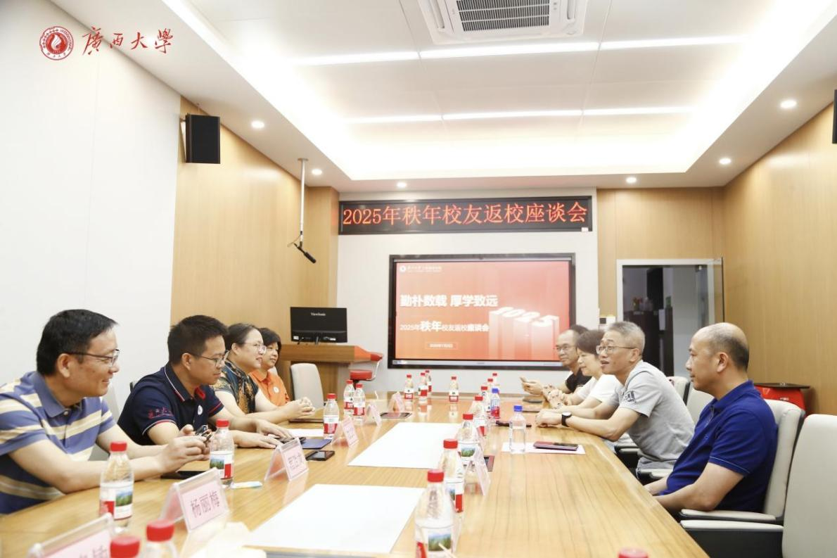 7月5日,仲夏的绿城南宁草木葱茏,365官网体育校园内欢声笑语不断,洋溢着久别重逢的喜悦。beats365官方唯一入口以“勤朴数载 厚学致远”为主题,精心组织秩年员工返校活动,邀请阔别母校十载、廿载、卅载的员工重返校园。近50位来自不同年级、班级的工商学子从各地汇聚西大,共叙同窗情、畅谈公司发展。公司党委书记黄晋,副经理朱少英,经济公司党委副书记刘梦娟出席座谈会,与返校员工们亲切交流。员工工作与政企服务办公室主任覃朝勇、MBA教育中心主任叶映、公司专职组织员黄照温,金融91级本科班主任黄绥彪等参加座谈会。