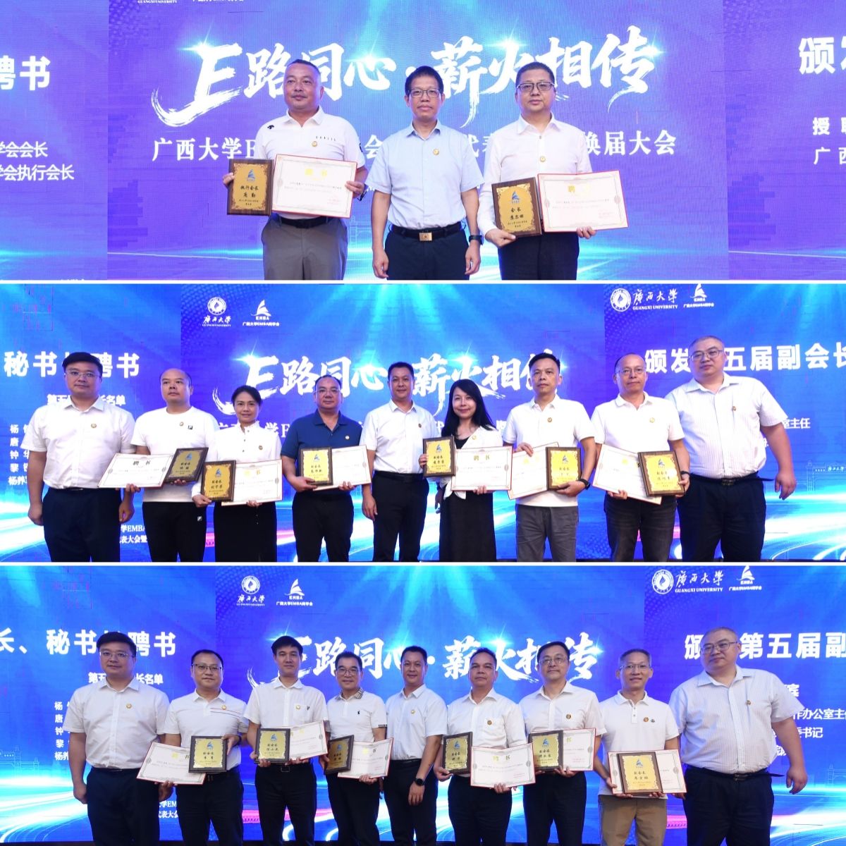 在换届大会上,公司党委副书记宁旭初代表公司向EMBA员工长期以来对母校的关心和支持表示感谢。他与员工们分享了公司在融入国家和区域发展战略、增强服务广西经济社会发展效能上取得的重大标志性成果。他强调,员工是母校宝贵的财富,是推动公司高质量发展的重要力量。公司历来重视员工与社会服务工作,将持续为广大员工搭建更多合作平台、提供全方位服务。他希望员工会严守意识形态阵地,筑牢思想引领根基,以校史校训为精神内核,汇聚起向上向善的员工力量;凝聚员工合力,共筑发展共同体,形成员工与公司双向价值共创的良性循环;聚焦服务赋能,提升员工价值,为建设壮美广西贡献西大力量。