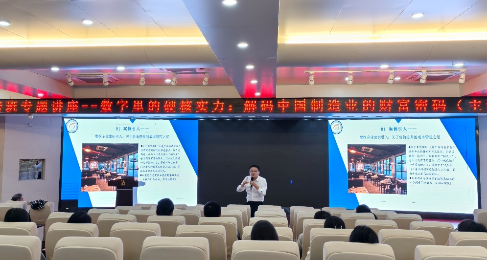 曹向以《数字里的硬核实力:解码中国制造业的“财富”密码》为题,通过生动的语言、深入浅出的讲解方式,带领员工们跳出宏大叙事,潜入数据的深海。他通过拆解龙头企业的财报,向大家展示了这些企业如何通过极致的成本控制、精准的研发投入以及智慧的资本运作,构建起真正的竞争优势。曹向指出,中国制造的胜利,不仅仅是规模的胜利,更是效率、创新与战略财务管理的胜利。讲座为同学们提供了一套从财报数据洞察行业趋势的分析方法,帮助大家学会如何透过财务报表的数字,捕捉到企业经营的脉搏和行业发展的走向。