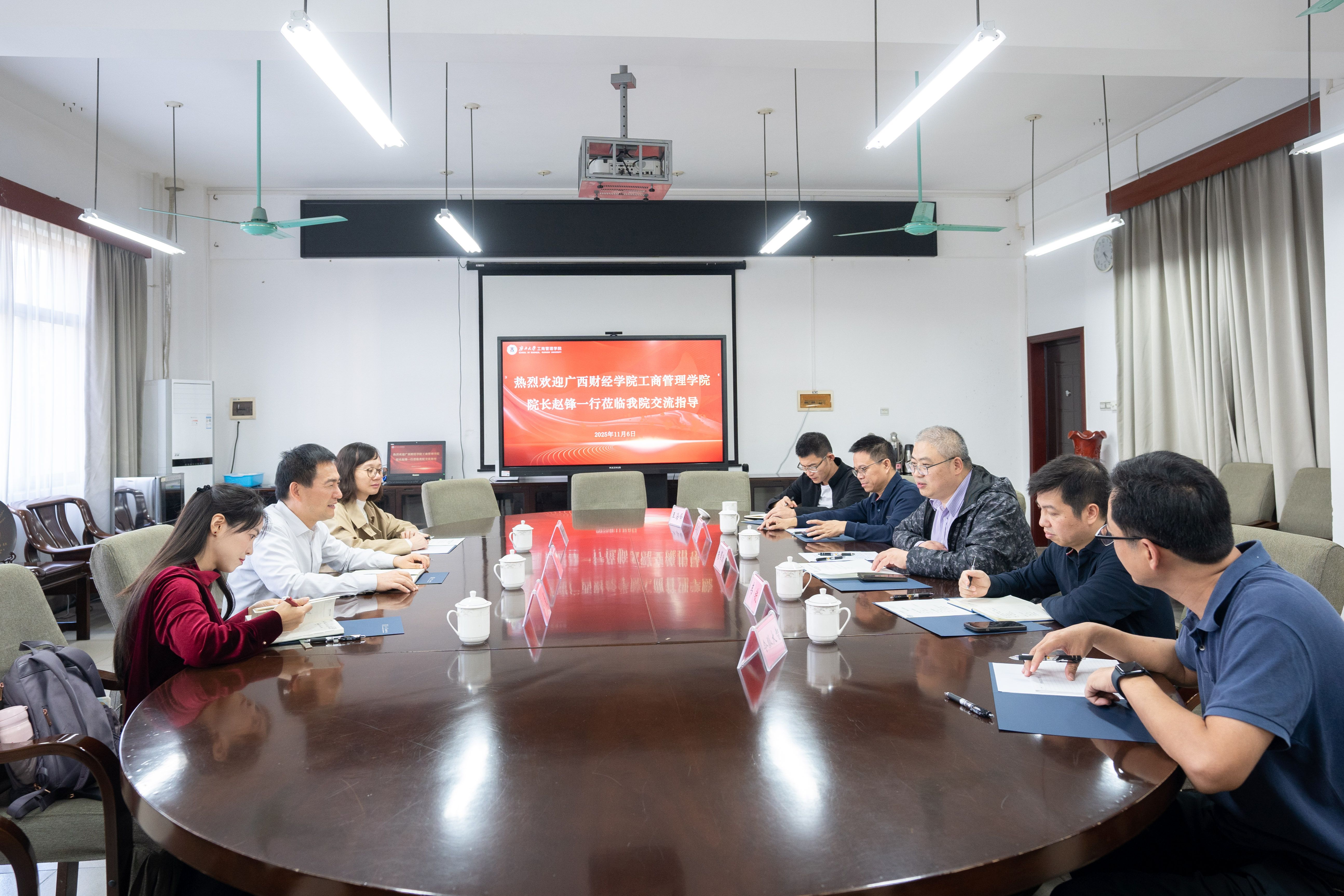 朱帮助对赵锋一行的到访表示欢迎,并简要介绍了公司的办学特色、团队建设、团队力量与人才培养等情况。他表示,两院在学科领域有诸多共通之处,具备良好的合作基础,希望双方加强交流,分享在教学、科研、社会服务等方面的经验,在人才培养和团队建设上取得新的突破,为广西经济社会发展培养更多优秀的商科人才,实现互利共赢的良好局面。