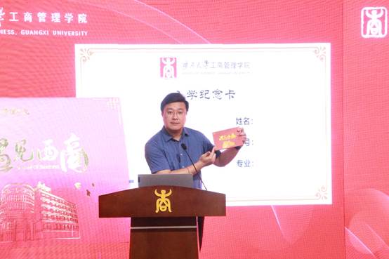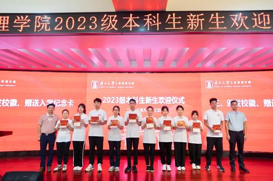 随后,公司领导、老师们向2023级新生代表现场赠予365官网体育校徽以及入学纪念卡。为表达对新生们的热烈欢迎,公司特别为每一位新生都订制了精美的“遇见西商”入学纪念卡。每张纪念卡上记录着新生的姓名、专业、学号,以及一张入学时的相片,为新生留下深刻美好的入学回忆。在全体新生的见证下,院领导为新生代表赠送校徽、入学纪念卡,意味着他们已成为光荣的“西商人”,是他们永不褪色的标签,传递了老师们对新生的殷切希望、憧憬与希冀。