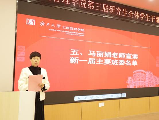 会议议程第五项,公司团委书记马丽娟老师宣读新一届主要班委名单。
