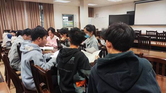 2023年11月14日,第五期预备党员党校班本科生第一、二党支部学员于第三教学楼305教室开展读书分享会活动,活动流程为集体学习《焦裕禄精神》,观看《一百堂党史课之焦裕禄精神》纪录片,结束后每位同志分享自己在本次读书活动中阅读的书籍,并进行阅读心得体会交流。