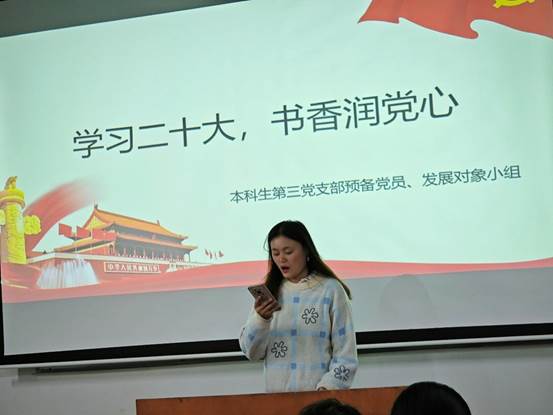 2023年11月16日,第五期预备党员党校班本科生第三党支部学员进行了读书分享会,学员们分享自己近期阅读的红色书籍,谈谈自己的读书感悟。同学们表示,通过此次活动,不仅加深了对红色文化的认识和理解,还增强了爱国情怀和社会责任感。大家纷纷表示,今后要更加努力学习,不断提高自身素质,为实现中华民族伟大复兴作出自己的贡献。