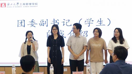 首先,研究生会主席团成员翟艳洁、唐子微、吕毅以及党建工作秘书处秘书长容楚楚和员工团委副书记曹羚彬进行自我介绍,并分别介绍了自己的分管部门。