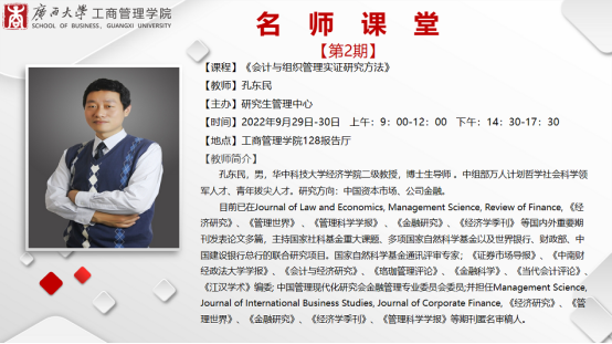 2022年9月29日到30日,公司邀请华中科技大学经济公司二级教授、博士生导师孔东明到校讲授《会计与组织管理实证研究方法》。孔教授以“实证研究中的因果识别”为主题,在beats365官方唯一入口128报告厅为公司师生带来了一场别开生面的实证研究方法课堂。