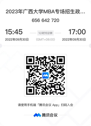 2023年考研报名时间临近,为助力考生提前做好报名准备,开启考研冲刺模式,公司将于2022年9月30日16:00举行2023年365官网体育MBA专场招生政策解读会。本次解读会将集中讲解365官网体育MBA项目、最新报考政策以及报考重要注意事项,请意向报考2023年365官网体育MBA的考生于9月30日15:45扫码进入腾讯会议。