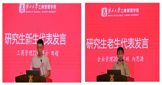 欢迎仪式上博士研究生田超、硕士研究生向思源分别作为新生代表及老生代表发言,表达了他们对求学之路的期许与执着。胡明明副教授作为教师代表欢迎新同学们的到来,他从独立思考、开阔视野等几个方面分享了自己的经历及想法,鼓励同学们求知求真,不负青春及时代赋予我们的使命。