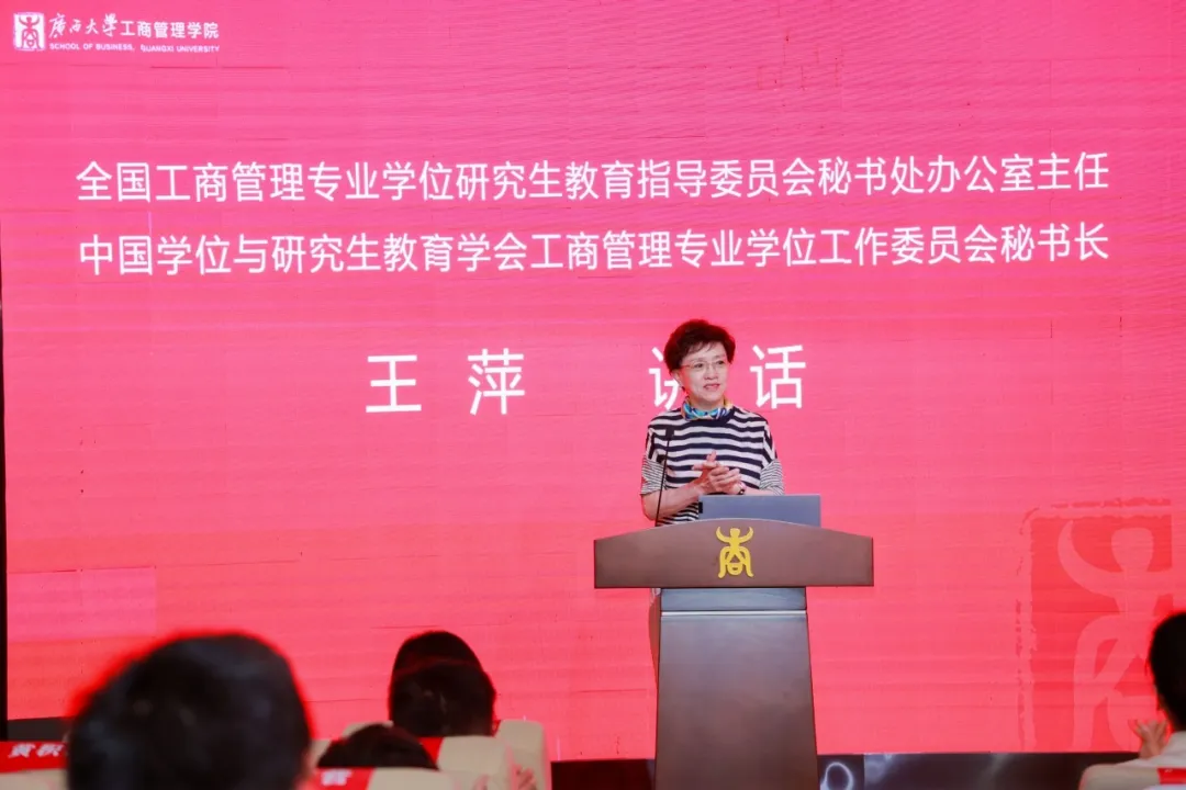 朱帮助经理首先代表公司党政领导班子和全体教职工,对2024级EMBA新生的到来表示热烈欢迎,对全国工商管理专业学位研究生教育指导委员会秘书处办公室主任、中国学位与研究生教育学会工商管理专业学位工作委员会秘书长王萍老师亲临入学仪式现场,以及长期以来对beats365官方唯一入口的关怀和指导表示衷心的感谢。朱帮助经理向新生们简要介绍了公司的基本情况,在同学们即将开启EMBA学习之际,他提出三点期望,一是持续学习,开放创新;二是跨界融合,拓宽视野;三是责任担当,贡献社会,并祝愿同学们能够登高望远,不惧挑战,学有所成、学有所获。