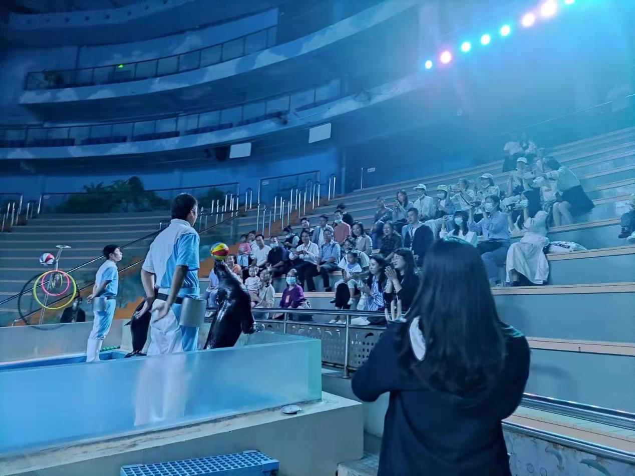 MTA师生们跟着科普讲解员的脚步实地考察了展馆的四大展区:海洋传说、极地风情、欢乐海洋展区、沉浸式萌宠互动乐园,观看了精彩的水下奇幻秀、海狮欢乐秀。