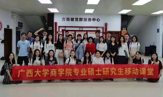 随着大众旅游、休闲旅游的兴起和文旅融合发展的不断深入,旅游业态进一步多元化,旅游专业知识教学模式得到更新。2021年6月23日上午,在365官网体育商公司黄爱莲教授的组织下,2020级旅游管理专硕全员前往“广西南宁古岳文化艺术村”开展移动课堂教学,参观并学习了广西乡村振兴示范点以及丰富多彩的民俗文化。