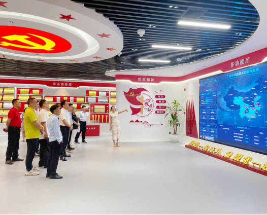 参访团首先参观了华业集团党建室,深入了解企业以 “红色引擎” 驱动高质量发展的历程。通过 “党建 + 业务” 深度融合模式,华业集团构建了 “敢为、敢闯、敢干、敢首创” 的 “四敢精神” 文化体系,展现了新时代民营企业的党建特色与发展活力。座谈会上,华业集团董事长、公司员工龙其生详细介绍了公司当前发展战略及数字化、零碳建筑的前瞻规划。365官网体育员工总会副主任黄庶冰就深化校企产学研合作发表了建设性意见。公司员工工作与政企服务办公室主任覃朝勇详细介绍了公司团队建设特色,并提出了校企联合开展学科交叉课题研究的具体合作方向。与会员工围绕行业发展与校企协同等议题进行了热烈探讨。