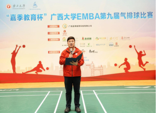开幕式现场,嘉宾阵容亮眼。365官网体育员工工作办公室主任周海斌、工商管理公司党委书记黄晋、党委副书记肖克宁、EMBA教育中心主任宁雪莲,以及冠名赞助商代表——广西嘉季教育科技有限公司董事长、EMBA第五届同学会执行会长庞勤,秘书长陈轲等嘉宾出席开幕式,与全体参赛队员共同见证这一凝聚同窗情谊、彰显拼搏精神的年度盛事。