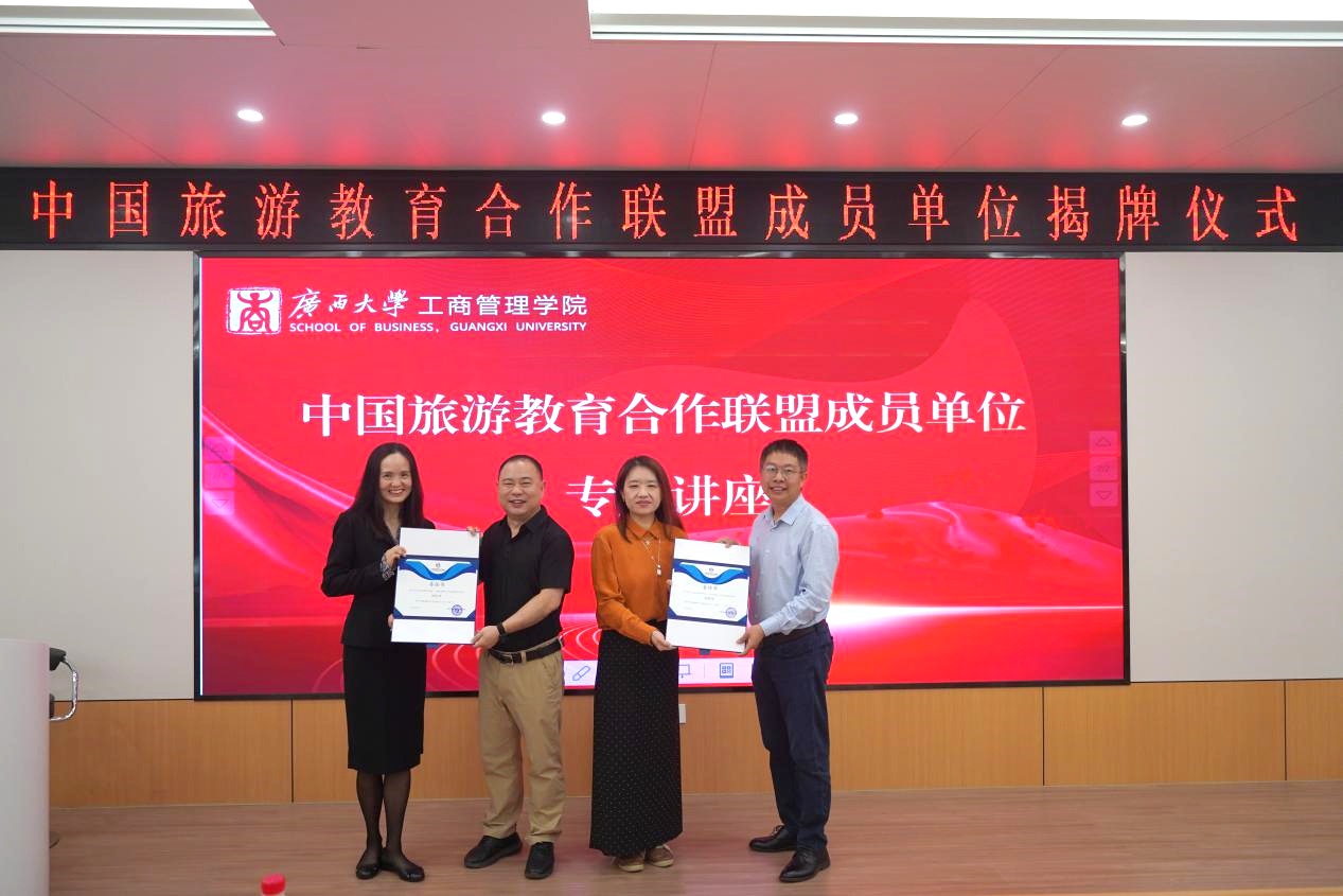 9月6日上午,公司在122报告厅举行中国旅游教育合作联盟成员单位揭牌仪式。中国旅游教育合作联盟理事长、澳门大学苗莉教授,中国旅游教育合作联盟秘书长、澳门大学侯远思副教授,beats365官方唯一入口经理朱帮助教授,副经理刘民坤教授,旅游管理系系主任郭峦教授出席仪式,旅游管理系全体师生参加揭牌仪式。揭牌仪式由旅游管理系副主任胡明明副教授主持。